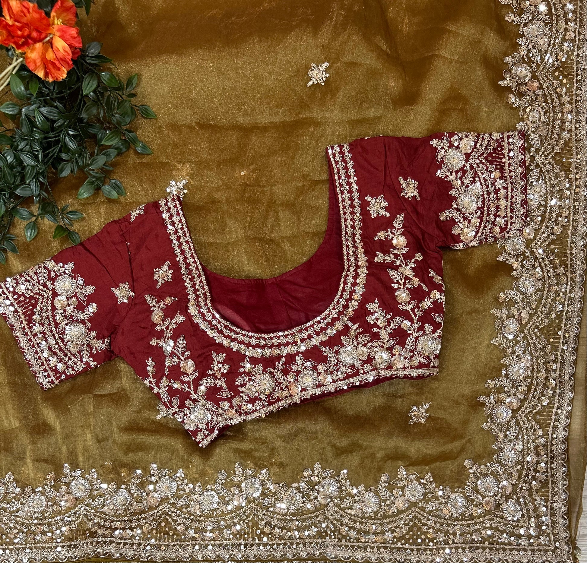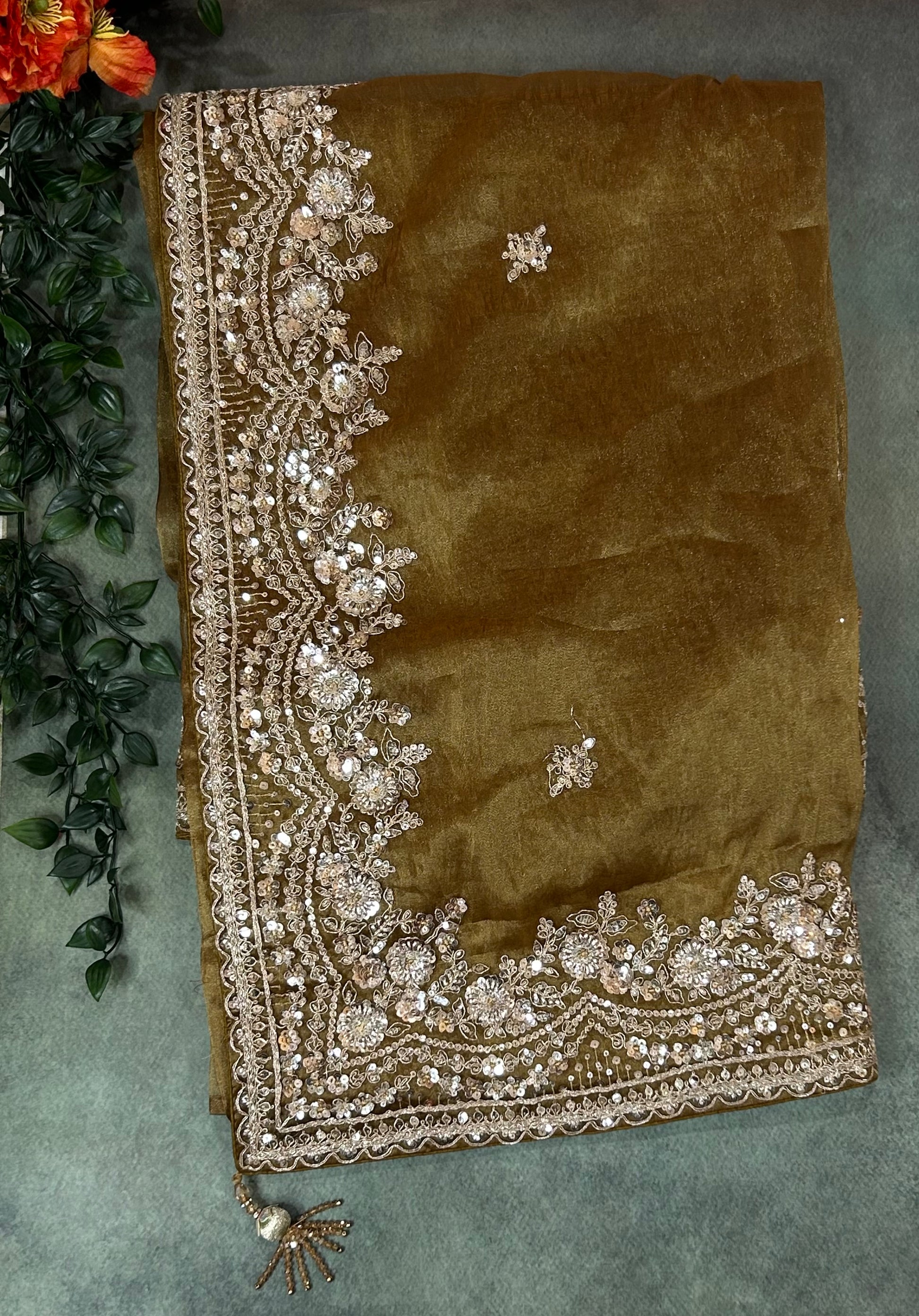 Pastel brown small Butta party wear with stitched blouse-10 saree